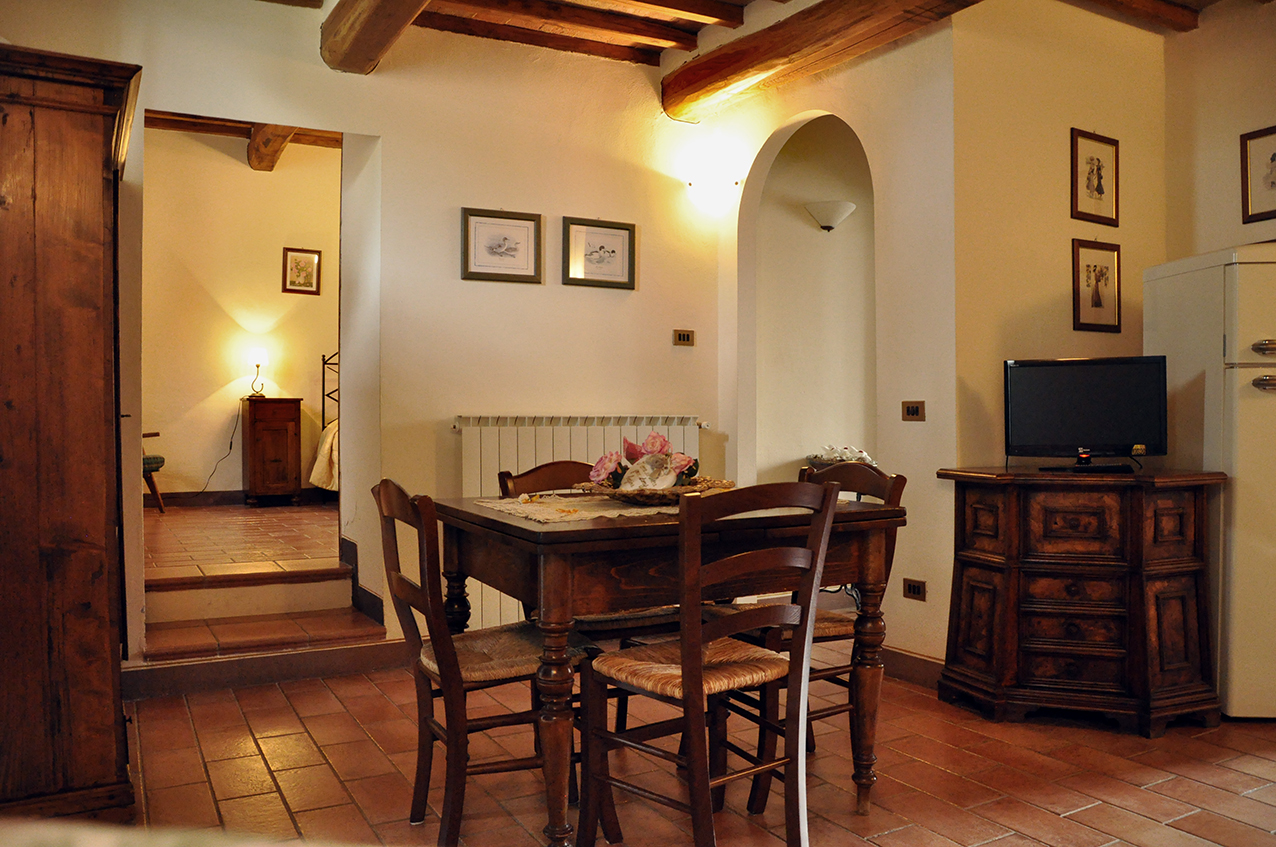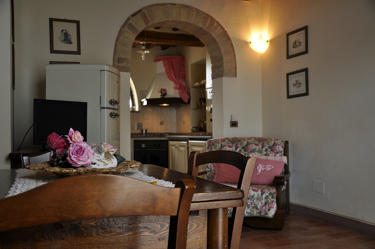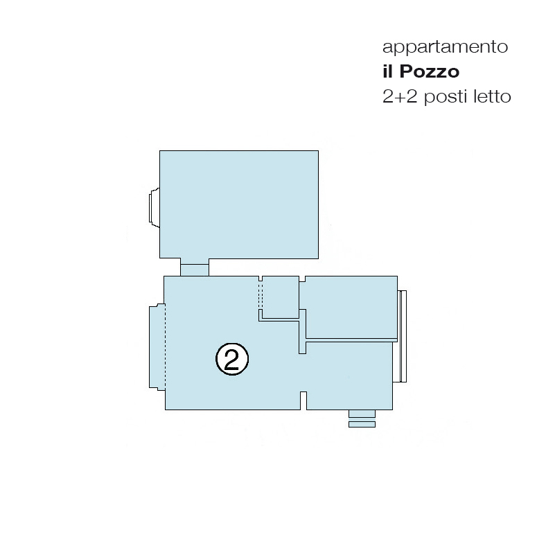 Piano terra sala da pranzo luminosa con due poltrone-letto, angolo cottura (forno lavastoviglie) aperto sulla sala da pranzo, 1 camera doppia, 1 bagno con doccia, 2+2 posti letto, spazio privato esterno con barbecue.