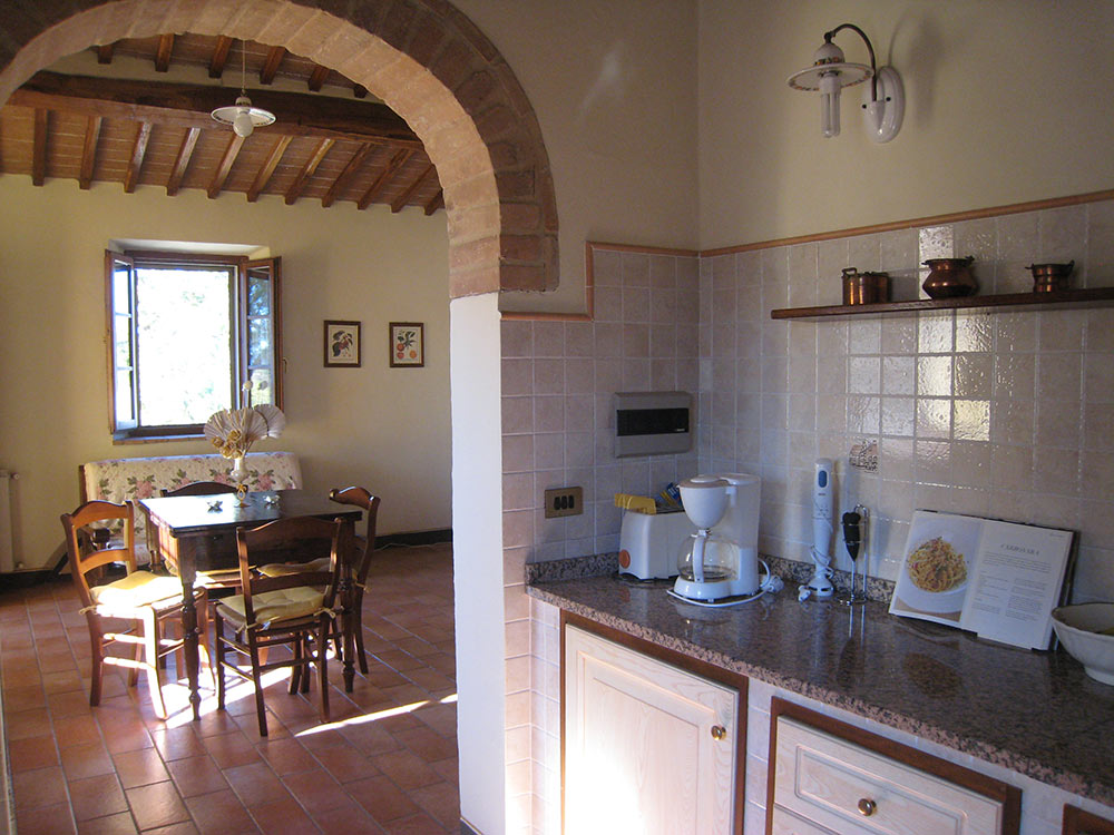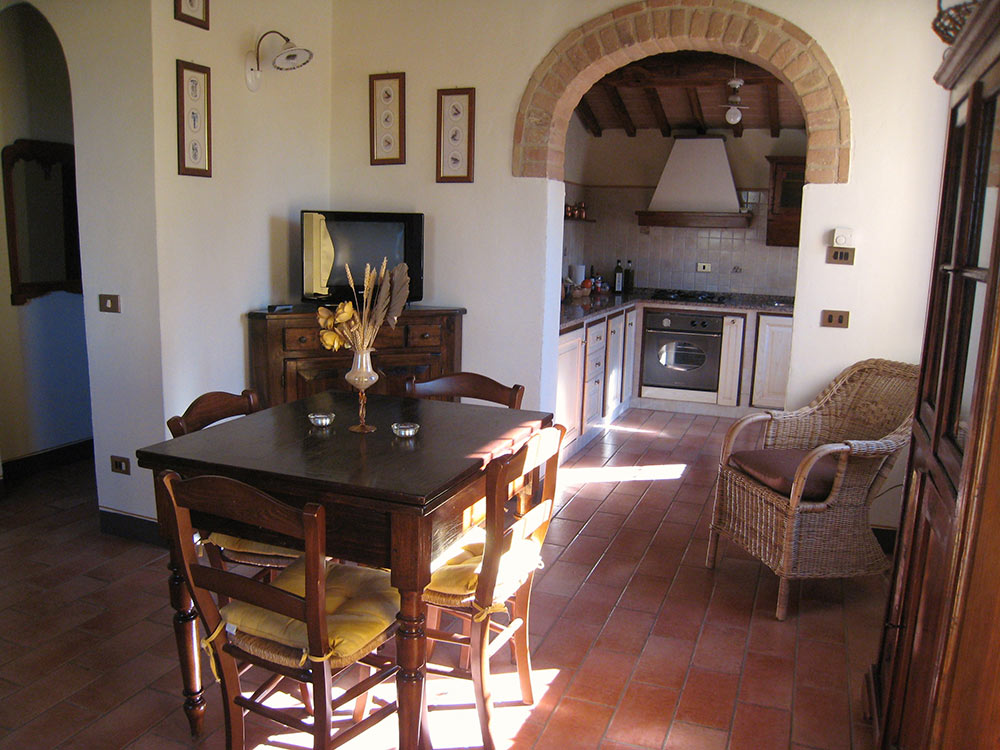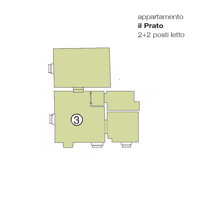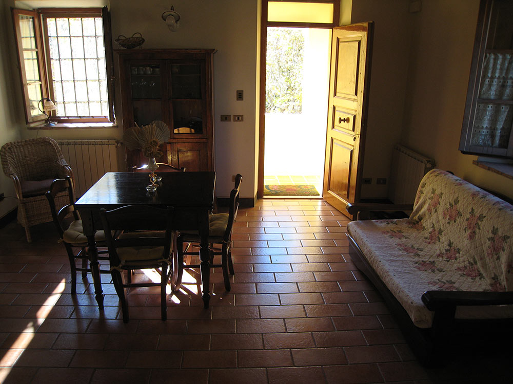 Primo piano originale sala da pranzo con divano-letto, cucina (forno lavastoviglie) aperta sul soggiorno, 1 camera doppia 2+2 posti letto, 1 bagno con doccia.
